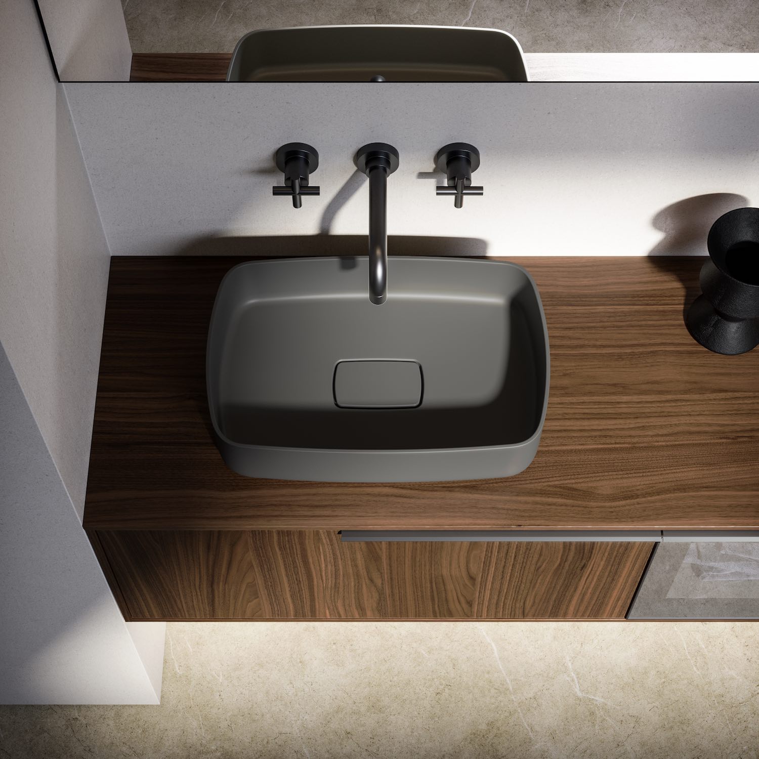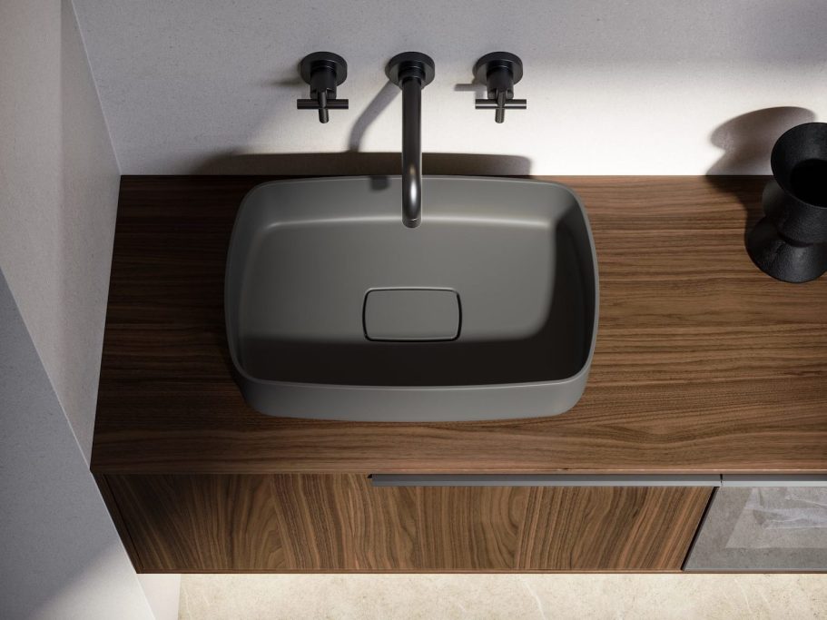 Das SLAB-Paneelsystem bietet vielfältige Lösungen für unterschiedlichste Anforderungen. Das neue SEI Small Waschbecken mit seinem minimalistischen Design ist in zwölf Farben erhältlich.