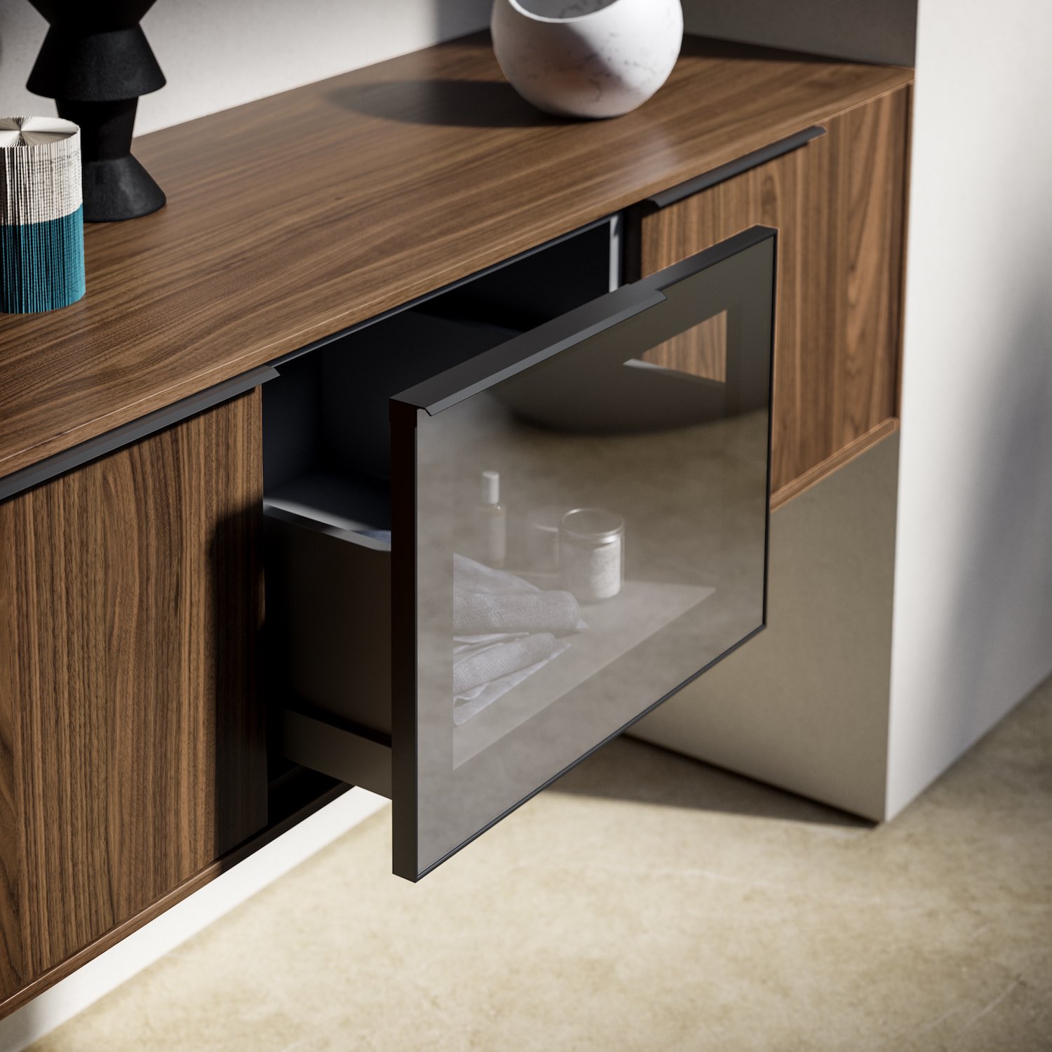 Canaletto-Nussbaum ist ein edles, warmes Holz, das an Werte und Traditionen vergangener Zeiten erinnert. Es hat seinen Charme nie verloren und prägt seit jeher die Flaggschiff-Kollektionen vieler Unternehmen. In dieser Komposition findet es seine perfekte Balance – wie ein kleiner Schatz in einem minimalistischen Rahmen.