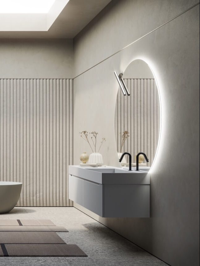 Ein Hauch raffinierter Technologie vollendet unsere beleuchteten Spiegel: Dank des kapazitiven Schalters lassen sie sich mühelos ein- und ausschalten sowie stufenlos dimmen.