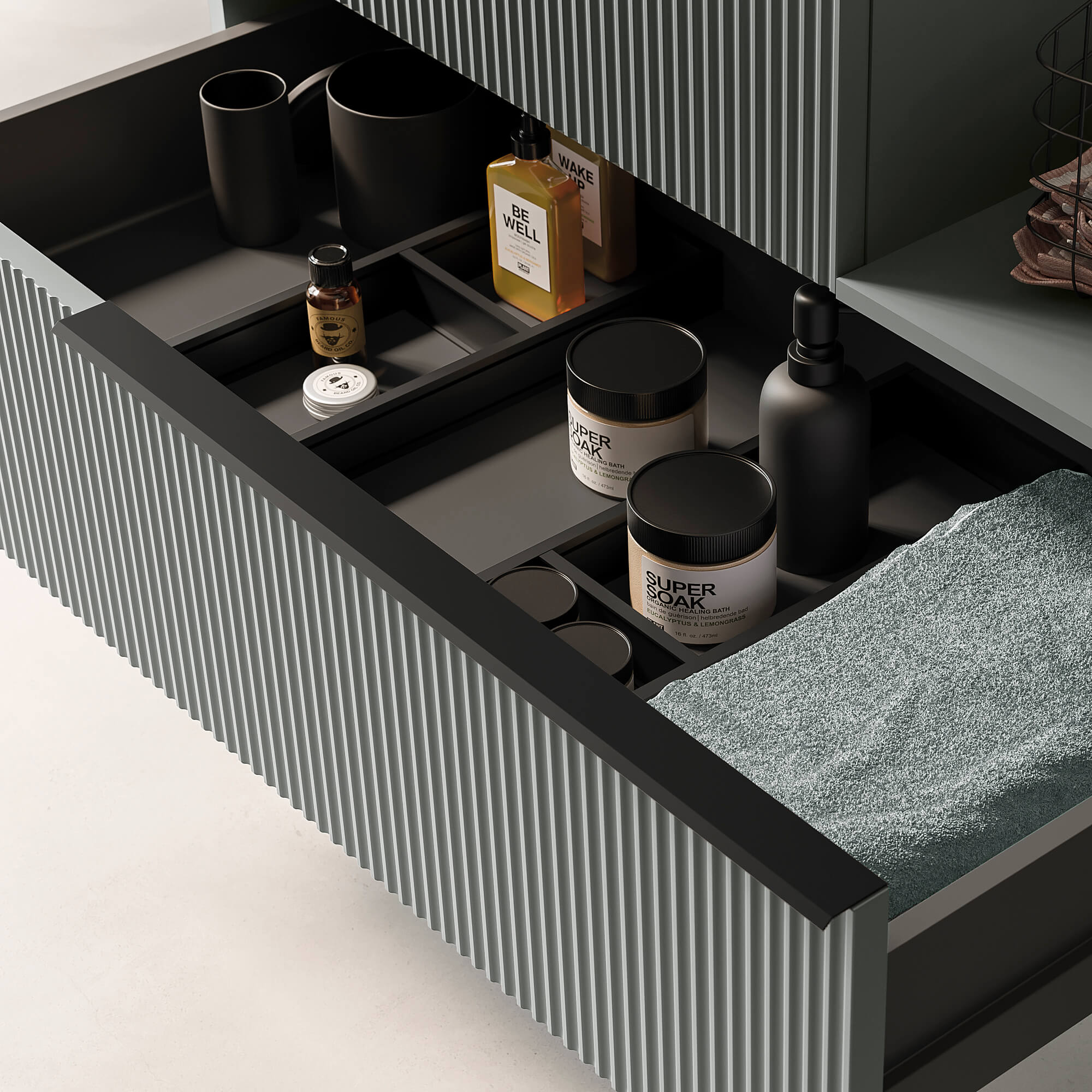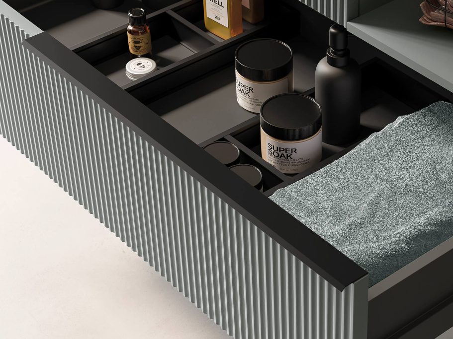 Die Schubladen lassen sich mit verschiedenen flexiblen Fächern ausstatten und ermöglichen dadurch eine optimale Innenraumorganisation.