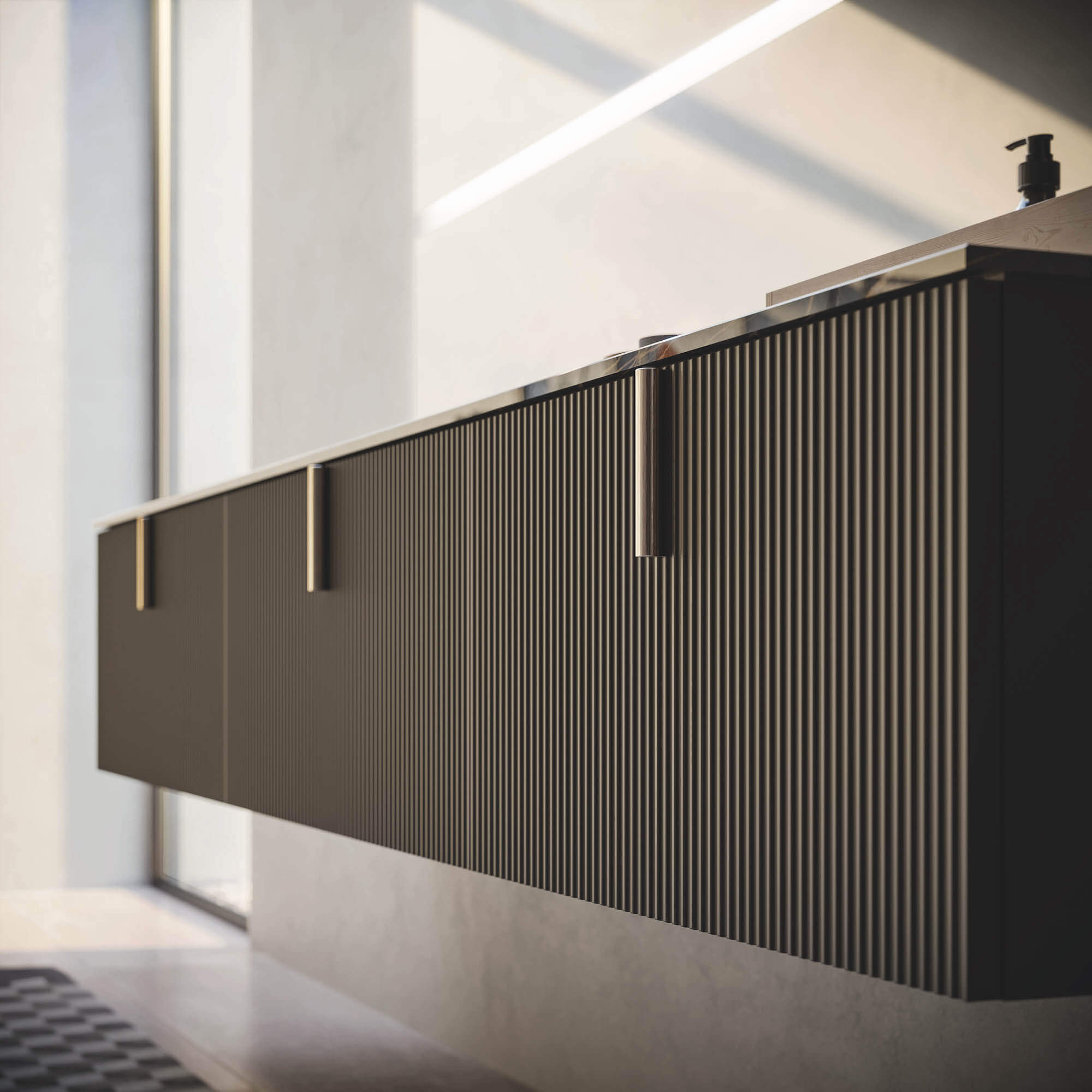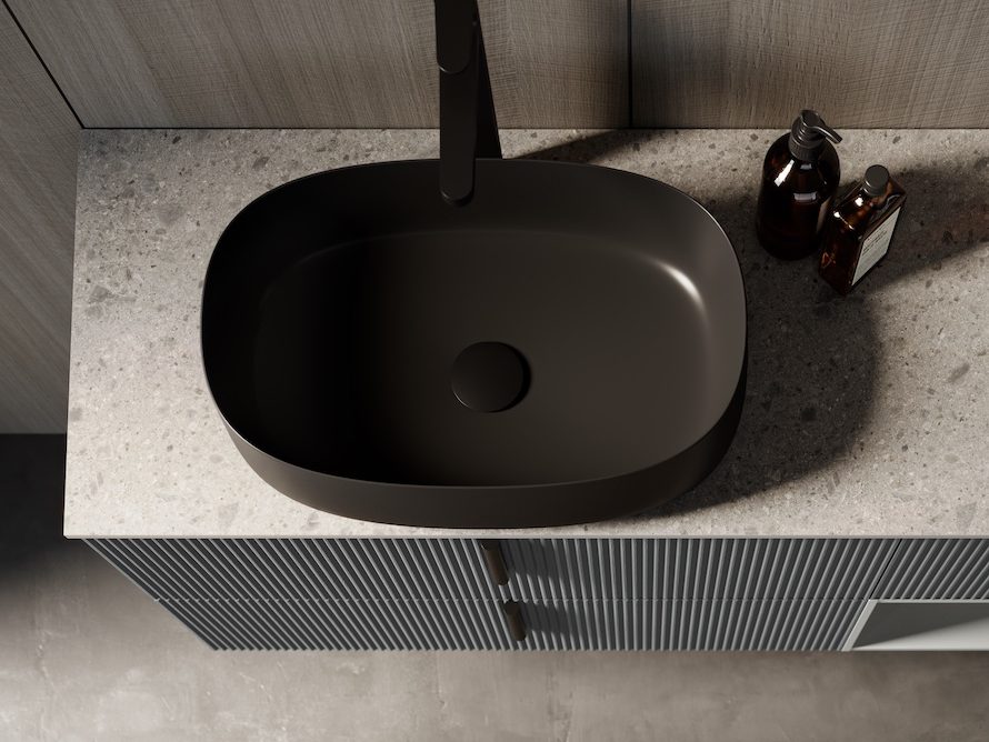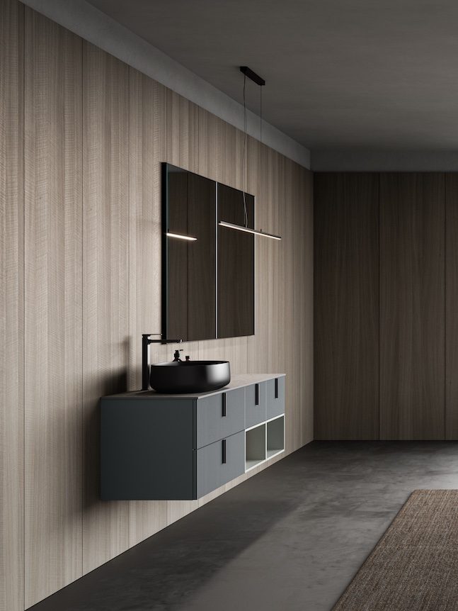 Die mattschwarzen Details an Griffen, Waschbecken, Spiegeln und Lampen sind zu einem charakteristischen Merkmal stilvoller Badezimmermöbel geworden.